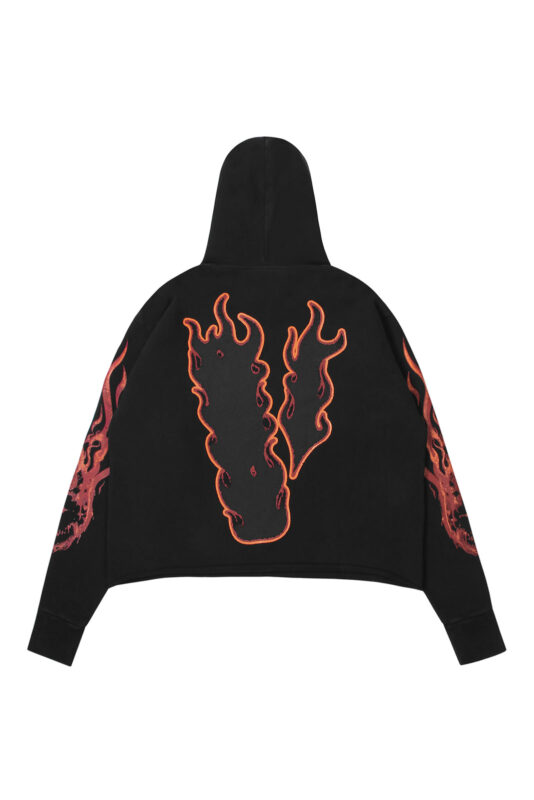The signature Vlone “V” logo is instantly recognizable. Often printed in orange, black, or red, the bold “V” symbolizes strength, unity, and individuality.