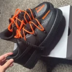 The Black/Orange Vlone Inspired Air Force 1 brings a bold, street-ready look to Nike’s classic silhouette. Featuring a sleek black leather base with vibrant orange accents, this custom design captures the rebellious energy and high-contrast aesthetic made famous by Vlone. The orange Swoosh, stitching, and heel details create a striking visual contrast, giving the sneaker a powerful edge. Built for comfort and everyday wear, it maintains the Air Force 1’s iconic shape while adding a unique, fashion-forward twist. Perfect for those who love standout streetwear, the Black/Orange Vlone Inspired Air Force 1 embodies confidence, creativity, and urban culture.