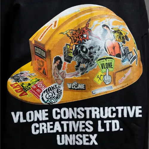 The Black Vlone Hard Hat Zip-Up Hoodie brings rugged street style and bold attitude together in a standout design. Crafted from premium cotton fleece, it offers superior comfort and warmth with a soft inner lining. The hoodie features a full front zipper, adjustable hood, and ribbed edges for a secure fit. The striking “Hard Hat” graphic and signature Vlone “V” logo on the back make it instantly recognizable. Perfect for layering or everyday wear, this hoodie embodies Vlone’s fearless urban aesthetic — blending comfort, durability, and street-ready style for those who live and breathe authenticity.