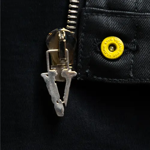 Silver-plated brass VLONE zipper pull.